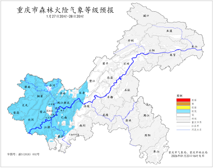 根据天气条件,结合林区物候情况,1月27日夜间至28日白天全市森林火险气象等级为二级(较低危险)至一级(低危险),其余时段为一级(低危险)。