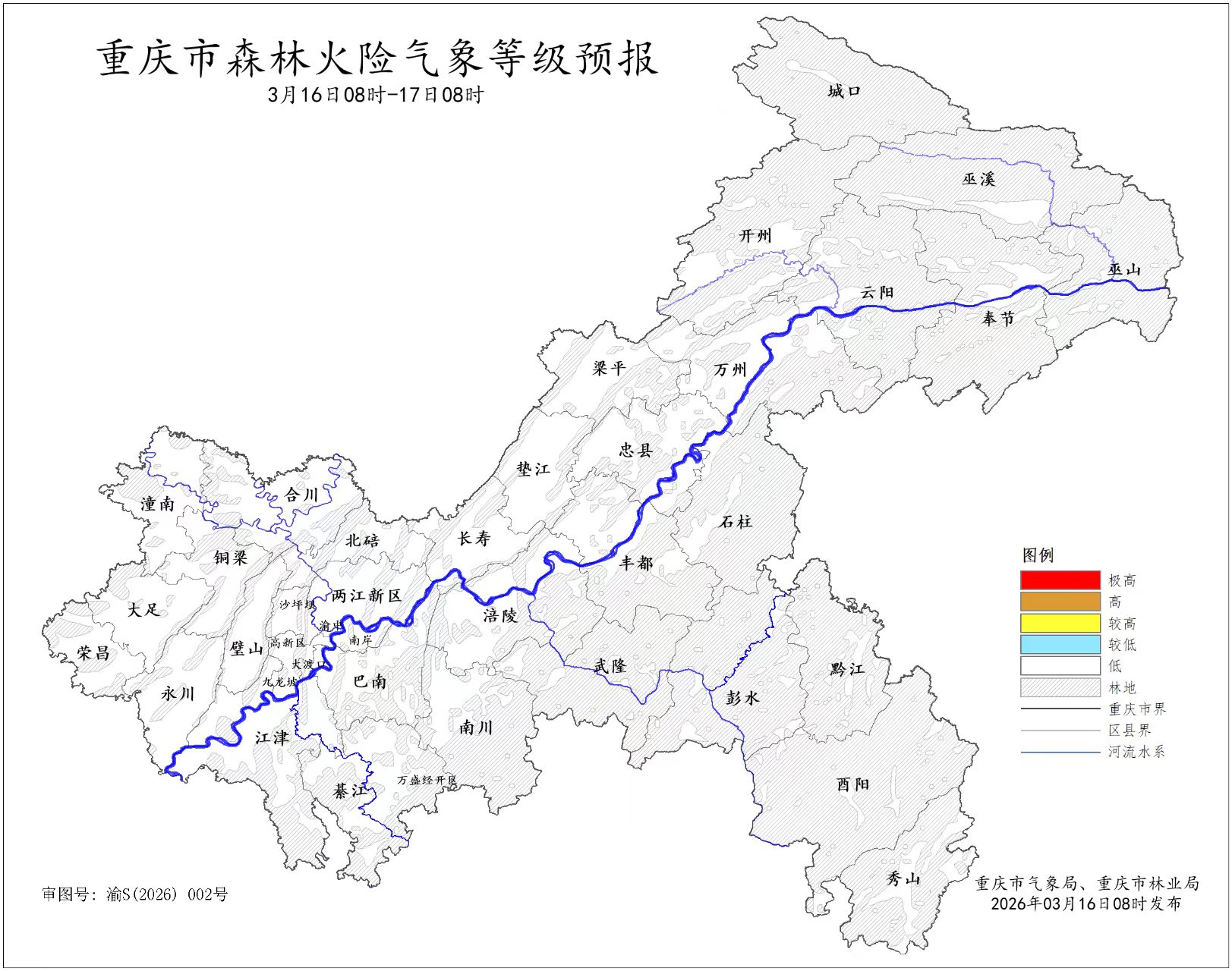 市森林火险气象等级为一级(低危险)。
