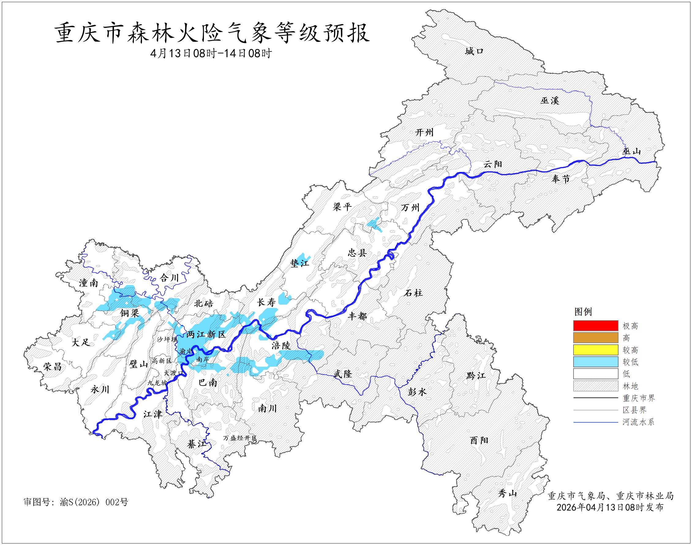 市森林火险气象等级为二级(较低危险)至一级(低危险)。