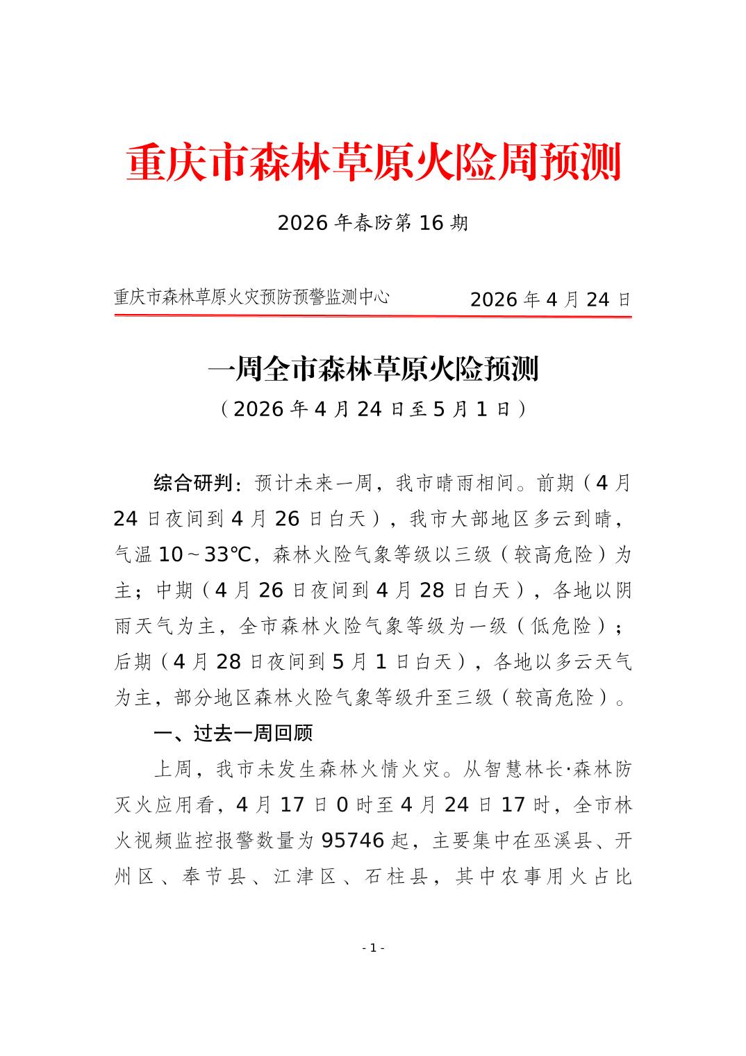 重庆市森林草原火险周预测(2026年春防第16期)