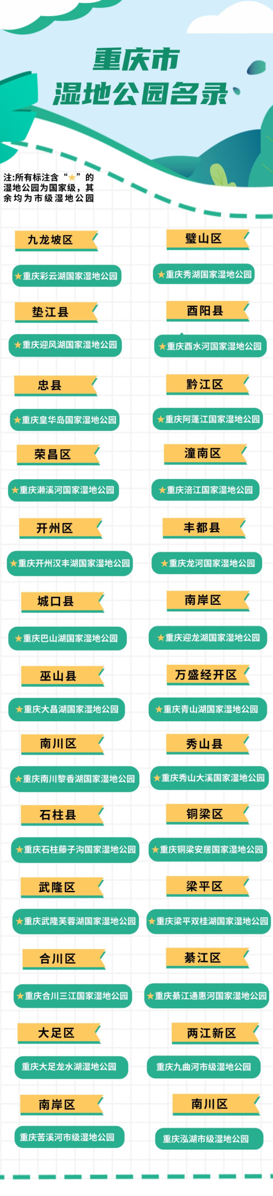 2026年重庆市湿地公园名录
