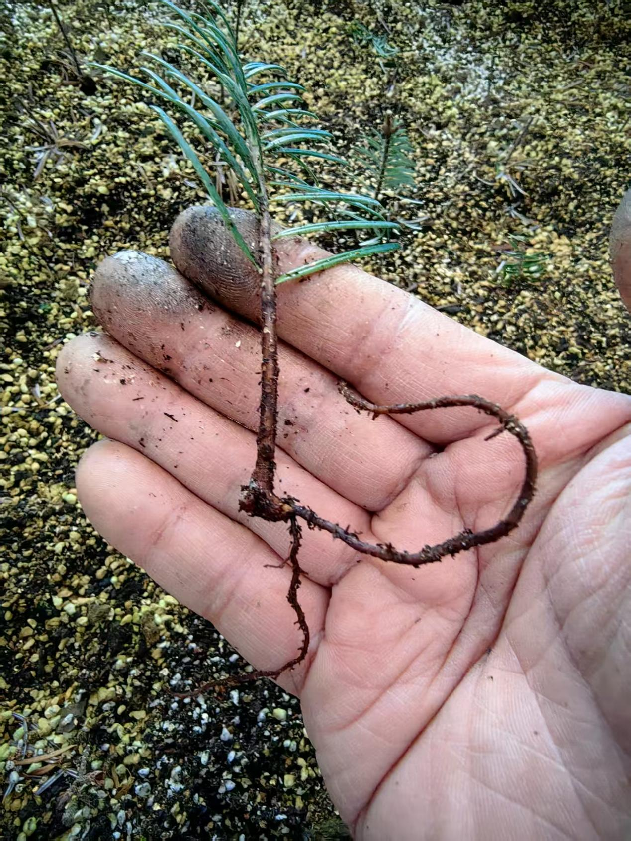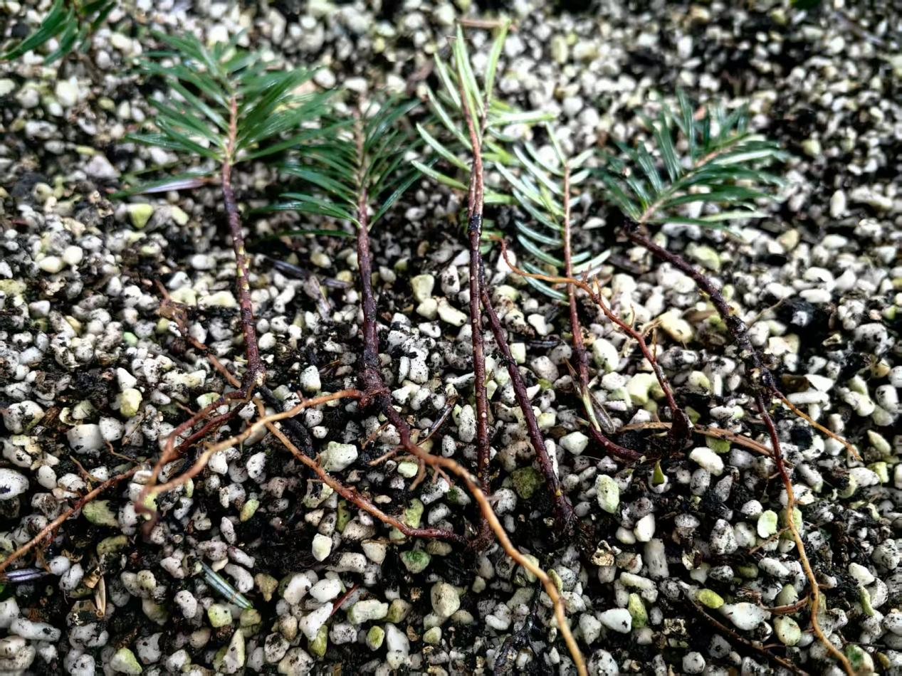 时间回溯到2025年5月9日,研究人员在五里坡保护区的朝阳坪采集了大量的秦岭冷杉枝条,基于前期的研究经验,经过预处理、扦插和管理等环节,首批扦插的少量嫩枝条插穗在8月17日检查时已生根,10月17日生根的嫩枝条插穗更多了,根长达10.1cm。首批扦插苗是五里坡保护区在秦岭冷杉扦插育苗方面创新的结果。