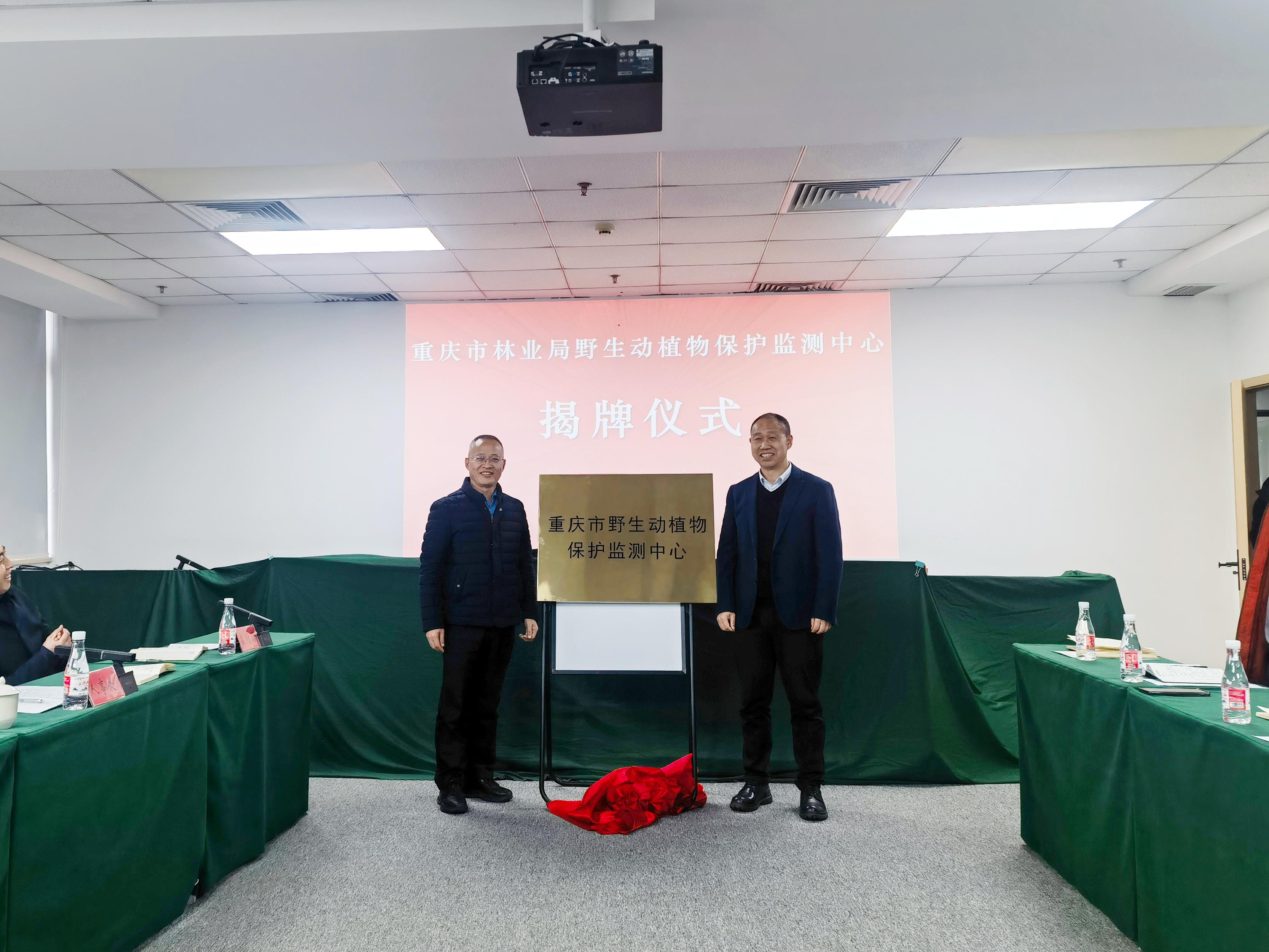 最后,汪树祥与市湿地中心主任王太强共同为“重庆市野生动植物保护监测中心”揭牌。