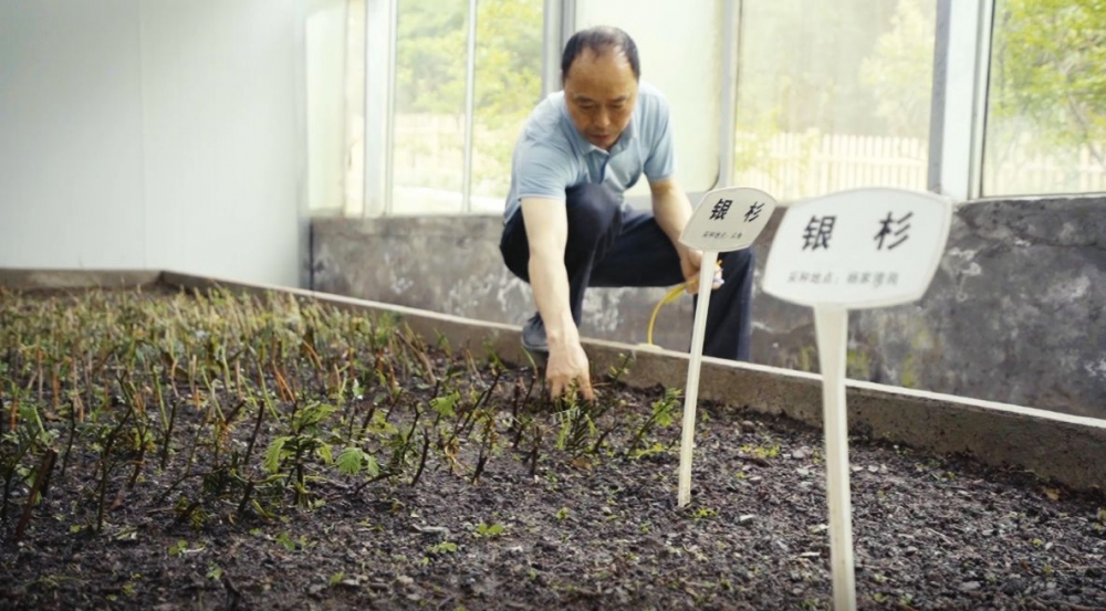 5月14日中午,天气多云,阳光偶尔穿出云层洒在金佛山西坡一座温室大棚内。这里是金佛山珍稀植物繁育科研基地,大棚里育有珍贵的银杉幼苗以及少量崖柏的幼苗。