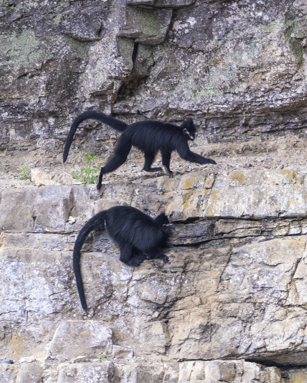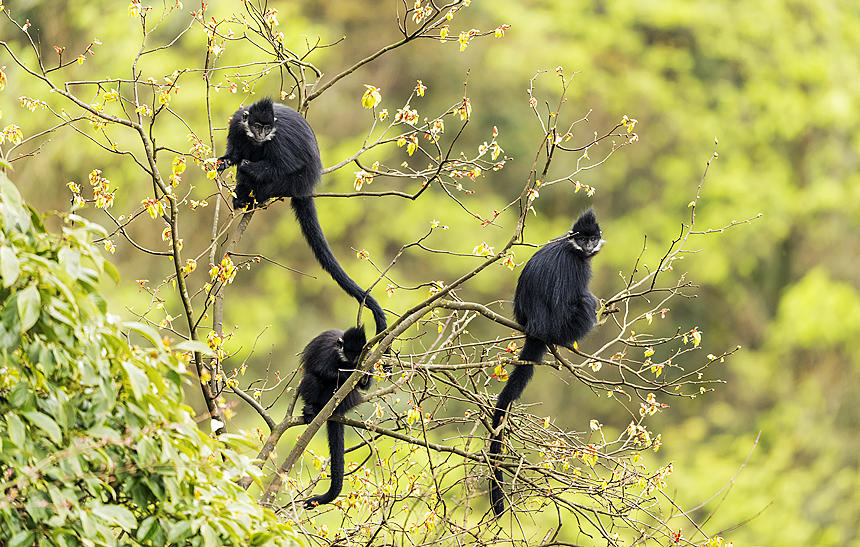 黑叶猴对栖息地的要求非常高。金佛山黑叶猴主要分布在天山坪峡谷一带,其足迹几乎从未踏出这一区域。从去年10月开始,金佛山国家自然保护区管理局在金佛山黑叶猴“家园”外围架设红外线感应相机,拍摄到了多个猴群在“家外”活动的画面,这表明金佛山生态环境正在持续向好,已成为黑叶猴理想的栖息地。