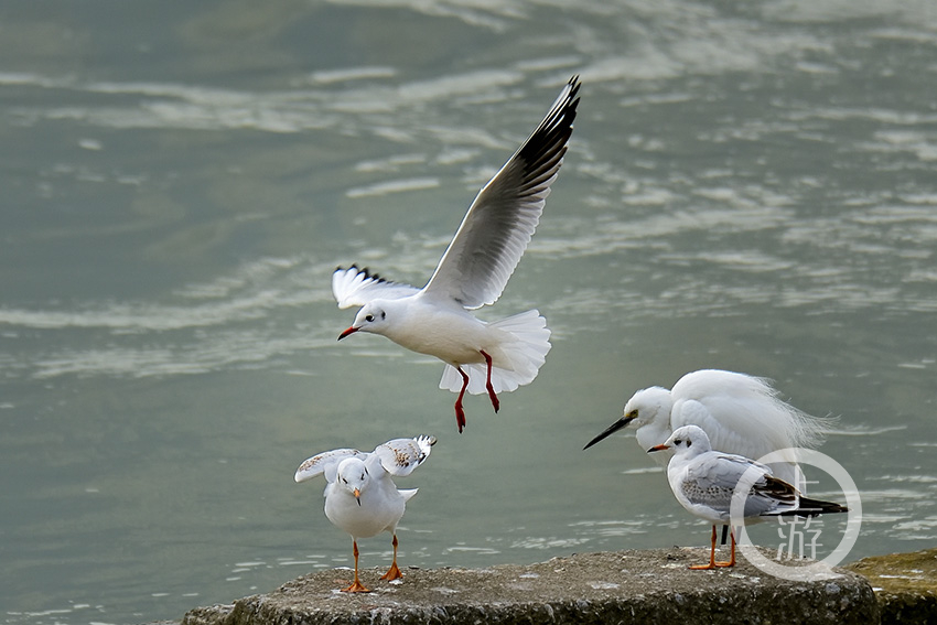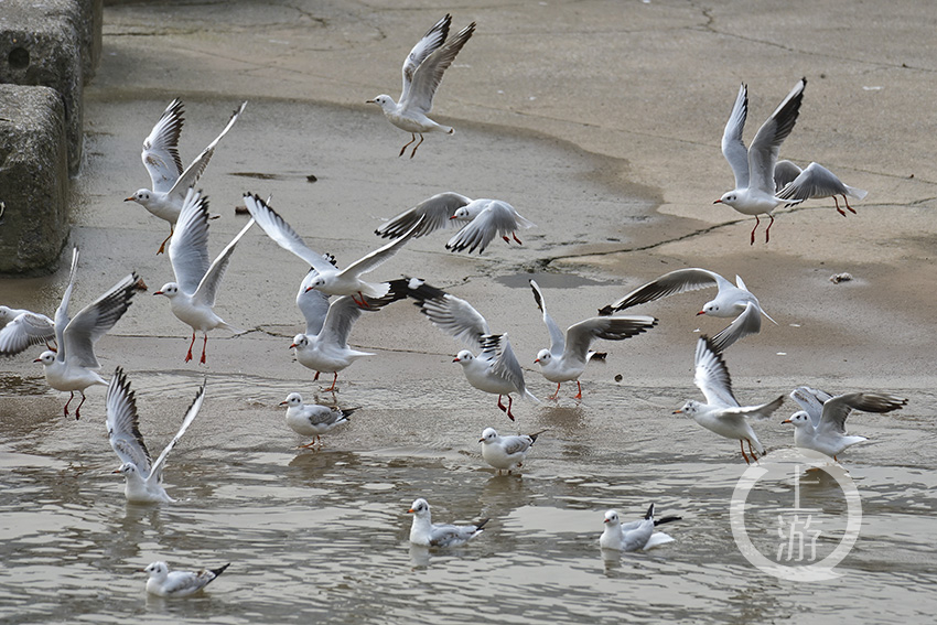 连日来,南岸弹子石长江边,越来越多的红嘴鸥来此栖息越冬,也吸引了无数市民、游客和摄影师来此观赏、拍摄。