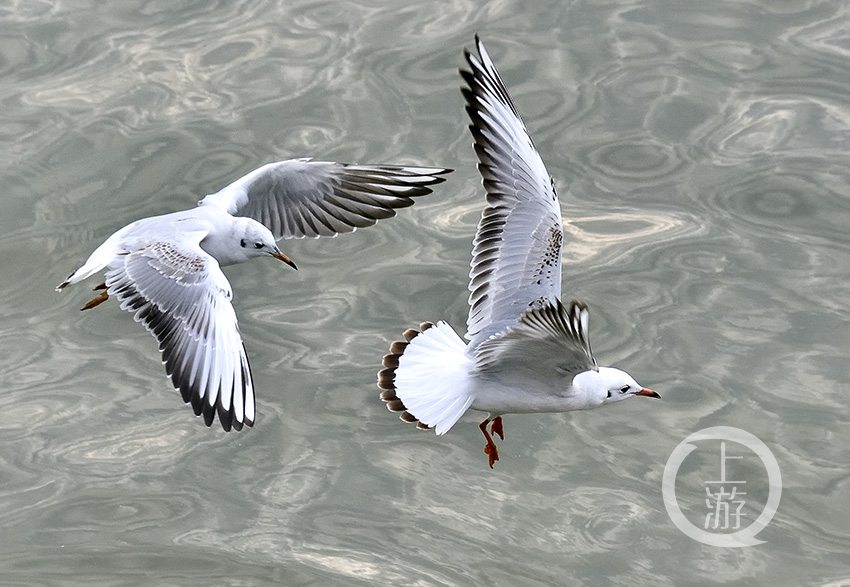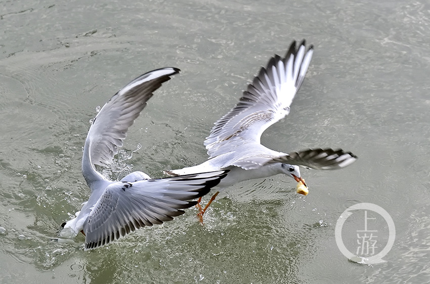 她告诉上游新闻记者,红嘴鸥成群出现在重庆长江边已经有数年了,每年初冬季节,它们便准时“赴约”,从最开始的数只到最多时候的上千只,今年至少已有数百只飞来栖息。这给了摄影师们很难得的创作机会。拍鸟的同时,大家也自觉成为护鸟使者,一边给鸟儿喂食,一边向市民、游客宣传爱鸟护鸟。