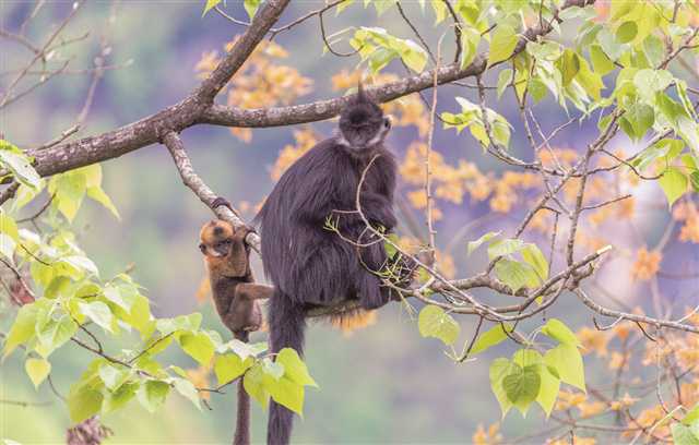 2020年,庙坝村与四川美术学院达成课题研究合作意向,共同打造“白颊黑叶猴主题村”,大力发展乡村旅游。随后,黑叶猴雕塑在村里一个一个落地,黑叶猴的标识分布四处,村民当起了志愿者,向游客宣讲黑叶猴保护知识。