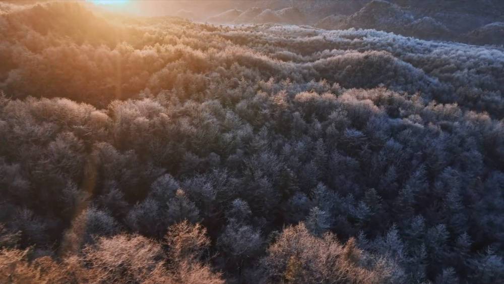 雪后的红池坝景区出现冰雪、雾凇、云海景观。
