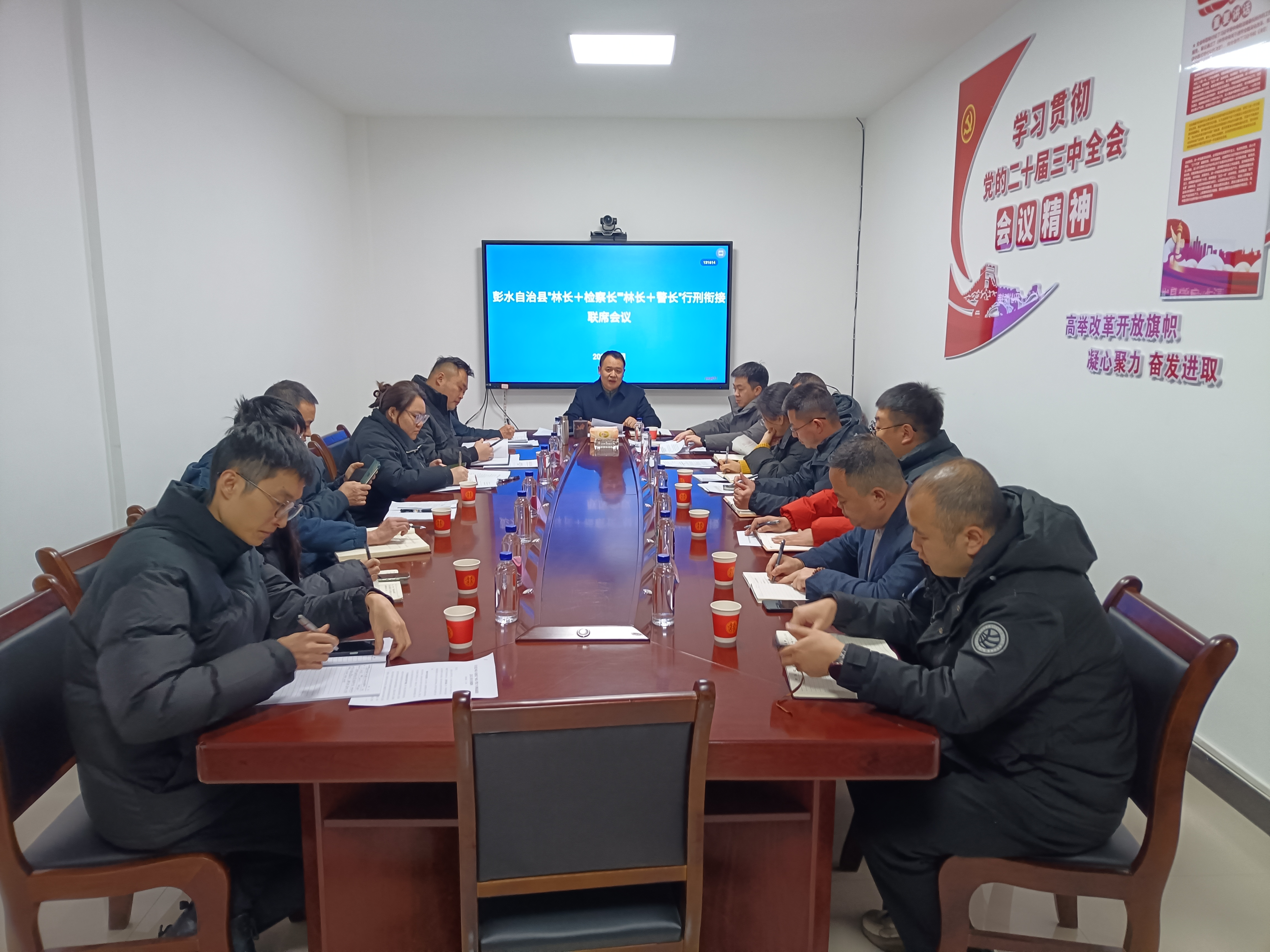 为切实强化森林资源保护管理,筑牢区域生态安全屏障,近日,彭水县林业局组织召开“林长+检察长”“林长+警长”行刑衔接联席会议,县检察院、县公安局、县林业局及相关企业代表参会。