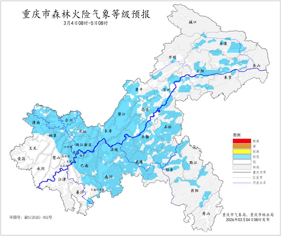 市森林火险气象等级为二级(较低危险)至一级(低危险)。