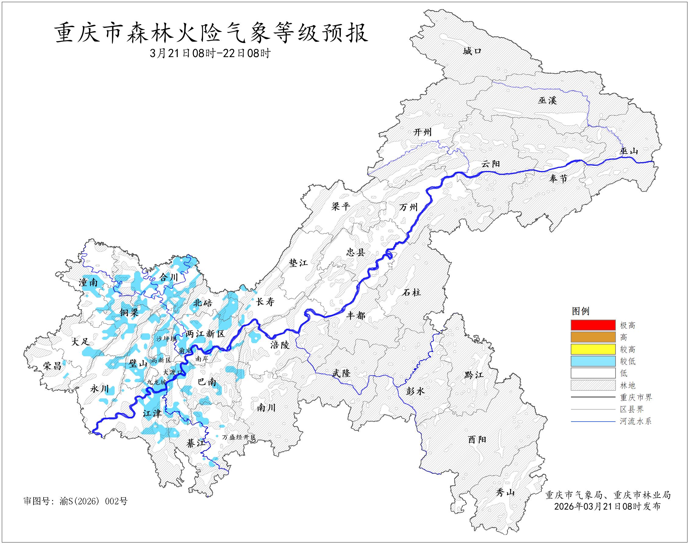 市森林火险气象等级二级(较低危险)至一级(低危险)。