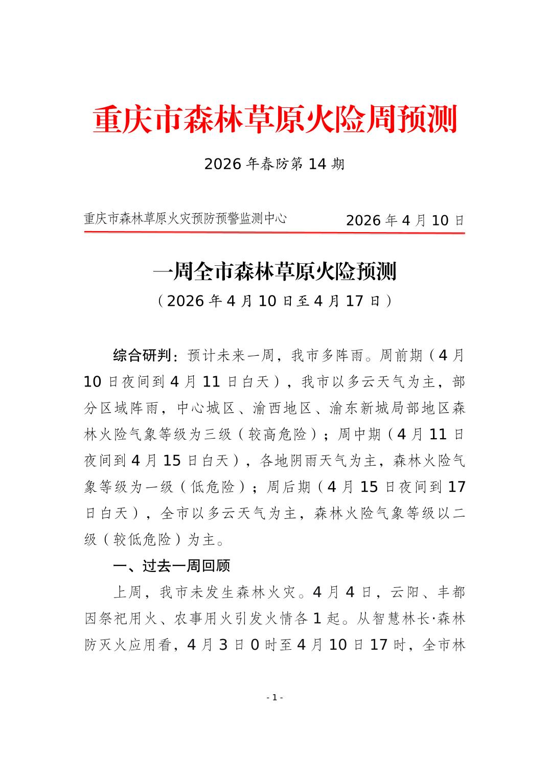 重庆市森林草原火险周预测(2026年春防第14期)