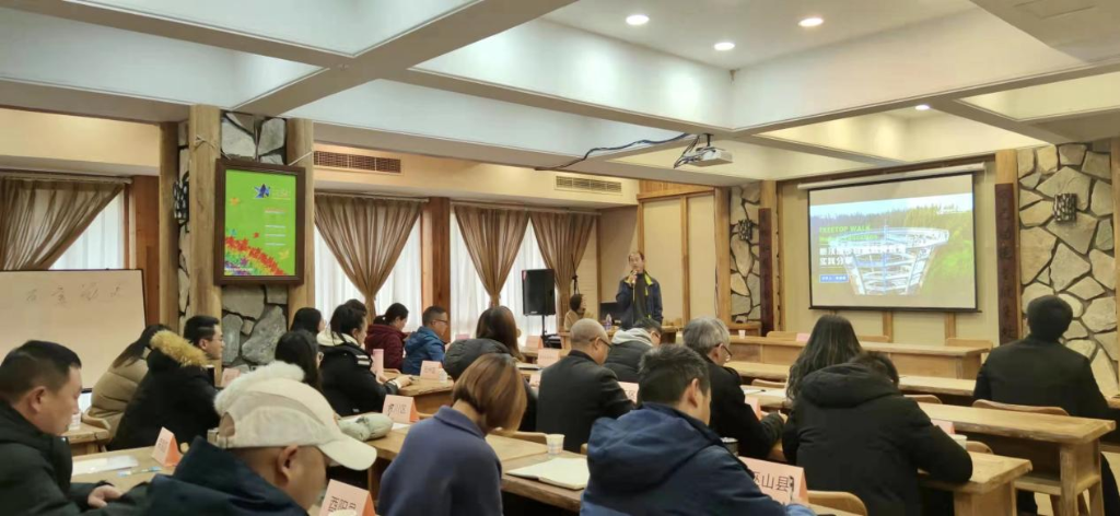 培训中,北京林业大学园林学院副教授乌恩以“自然教育营地规划与设计”为题授课,详细分析了自然教育存在的价值,系统讲解了自然教育设施规划、建设与分布;自然介公益发展中心主任陈竹、“树顶漫步”创始人CEO申青峰、彩色森林”创始人巫艾玲、重庆南山植物园高级工程师鞠学勇分别从基于保护地的自然教育营地运营——国际经验与国内实践、树顶漫步自然教育营地实践分享、“彩色森林”运营分享、设计符合青少年需要的研学活动四个主题进行了专题教学。