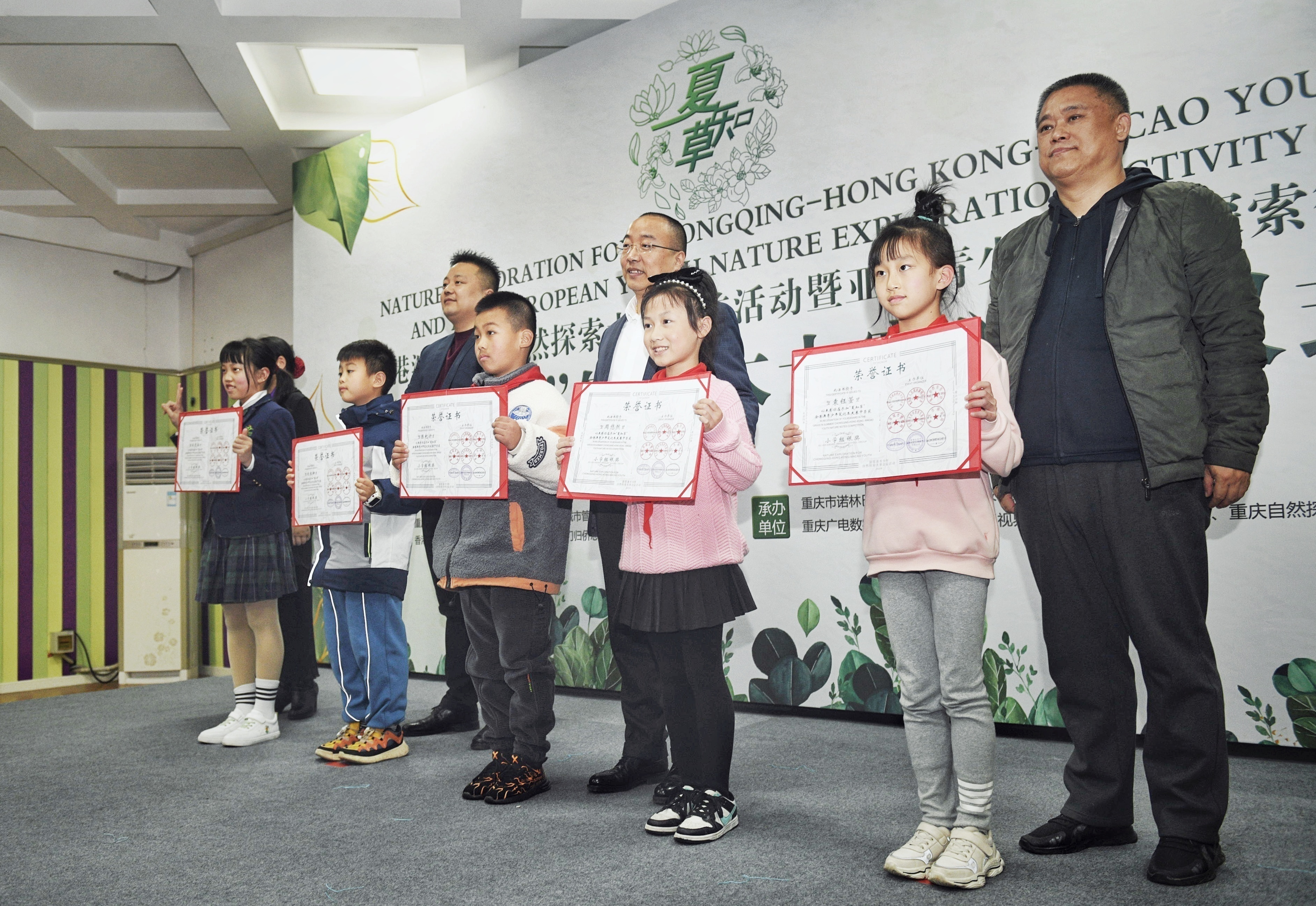 12月10日,渝港澳青少年自然探索大赛公益活动暨亚欧青少年自然探索行动“夏知草”笔记本大赛颁奖仪式在重庆诺林巴蜀外籍人员子女学校举行,555件作品分别获得金奖、银奖和铜奖,来自重庆、港澳地区和亚欧部分国家的获奖学生代表同台接受颁奖。