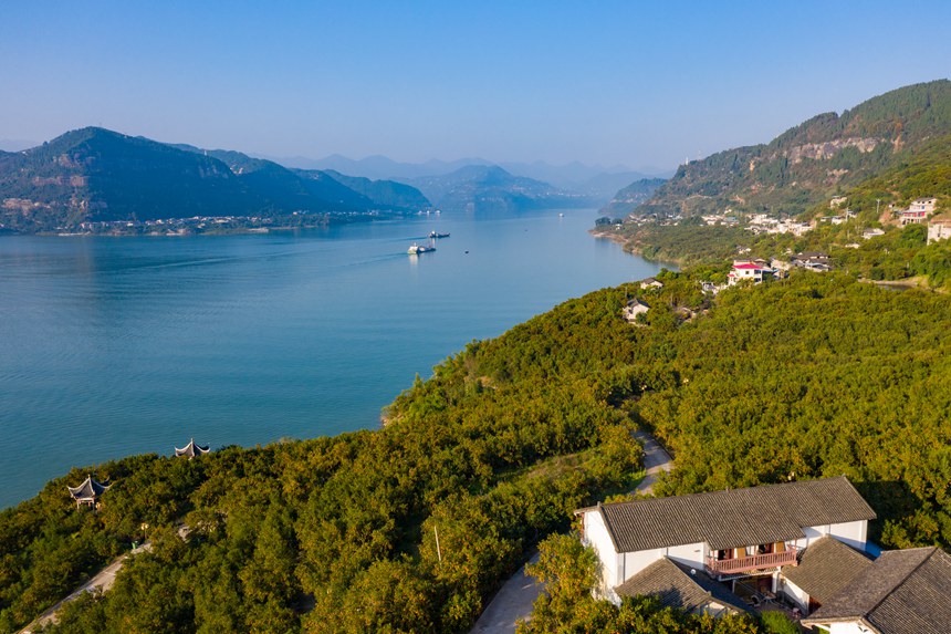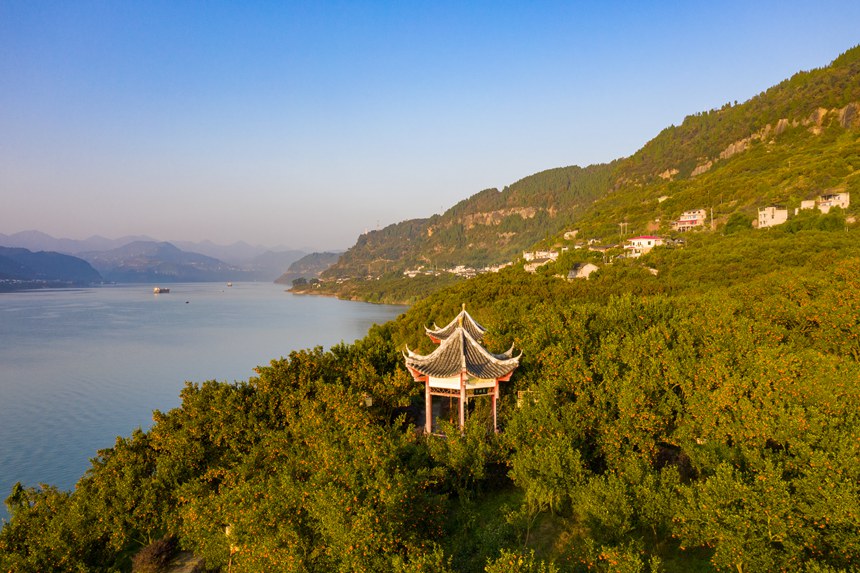 人民网重庆1月17日电 近日,重庆市万州区长江两岸的橘子红了,漫山的红桔与江水、船舶相映成趣,成为三峡库区一道美丽的风景。