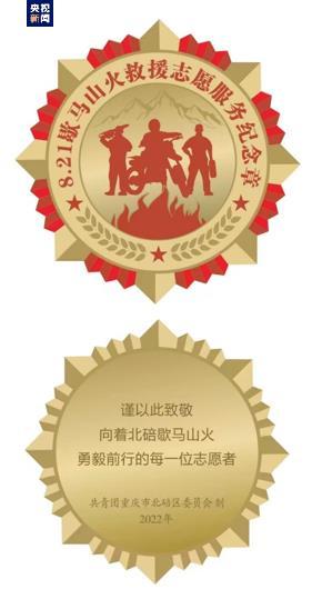 为致敬在2022年重庆山火中英勇奉献的志愿者们,共青团重庆市北碚区委近日制作了山火志愿服务纪念章和物资捐赠证书,发放给参与灭火救援的志愿者和社会各界捐赠物资的爱心人士们,以纪念大家守望相助、无私奉献、齐心战山火的精神。