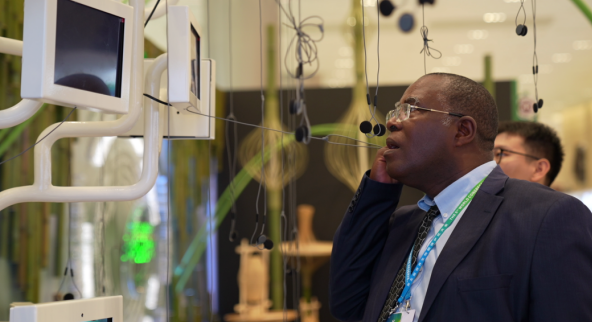 据了解,该展览构建起“生态—人类—未来”之间的感知桥梁,探索艺术在重塑自然关系、建构未来生活方式中的积极作用。展览立足东方哲学“生命—生计—生态”的整体观,巧妙融合科技艺术、跨媒介装置与在地材料,选取兼具生态意涵与中国文化象征的“竹”与“米”为创作元素,打造出10组沉浸式艺术装置。观众置身其中,通过感性体验与理性思考的交融,激发与生物多样性、文化多样性之间的情感共鸣与思维互动,拓展生态艺术在当代社会的表达边界。