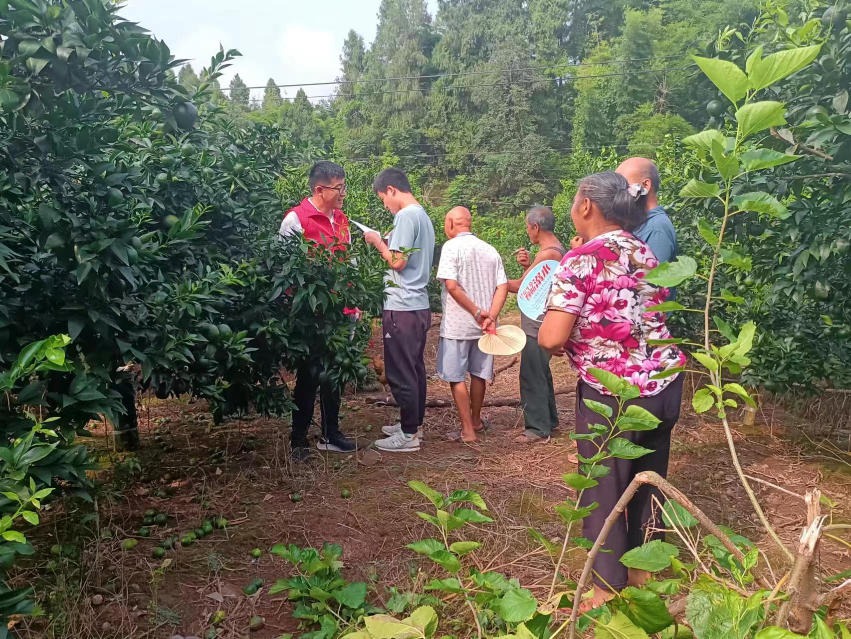 市级林业科技特派员罗豫川深入柑橘基地,针对当前结果期柑橘树势弱、柑橘天牛虫害等问题,为果农积极支招。果农纷纷表示通过本次活动,学到了实用的科学知识,提高了科学技能,得到很多收获。